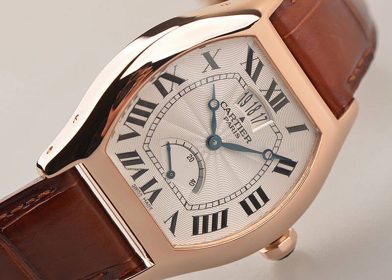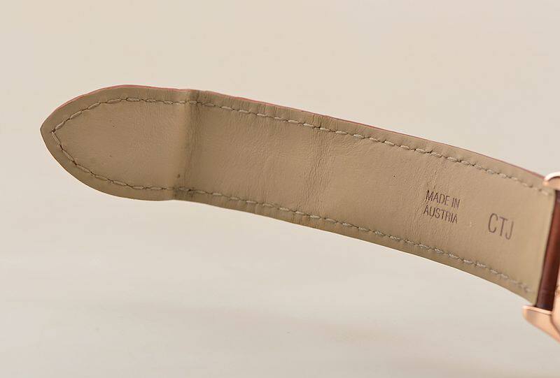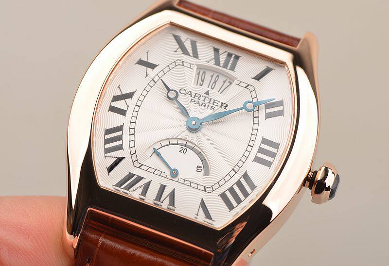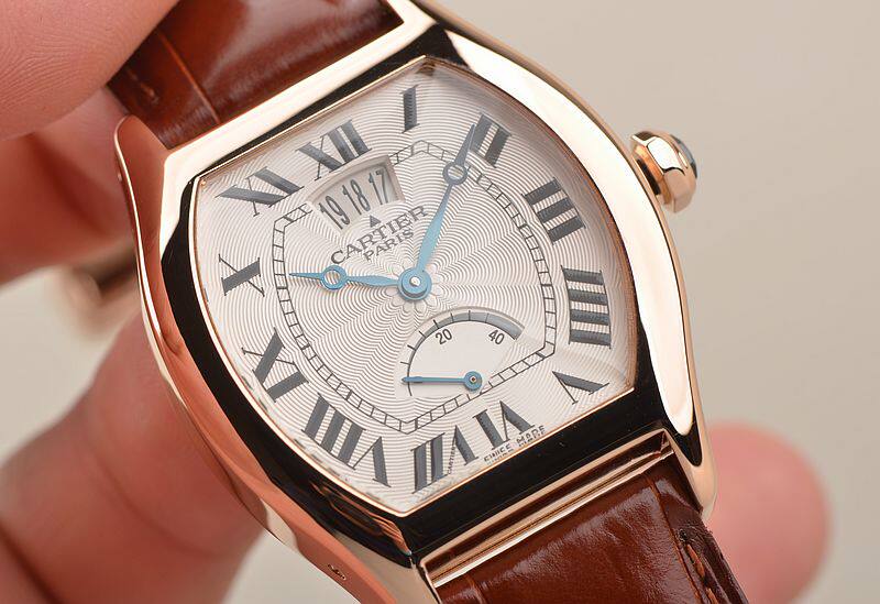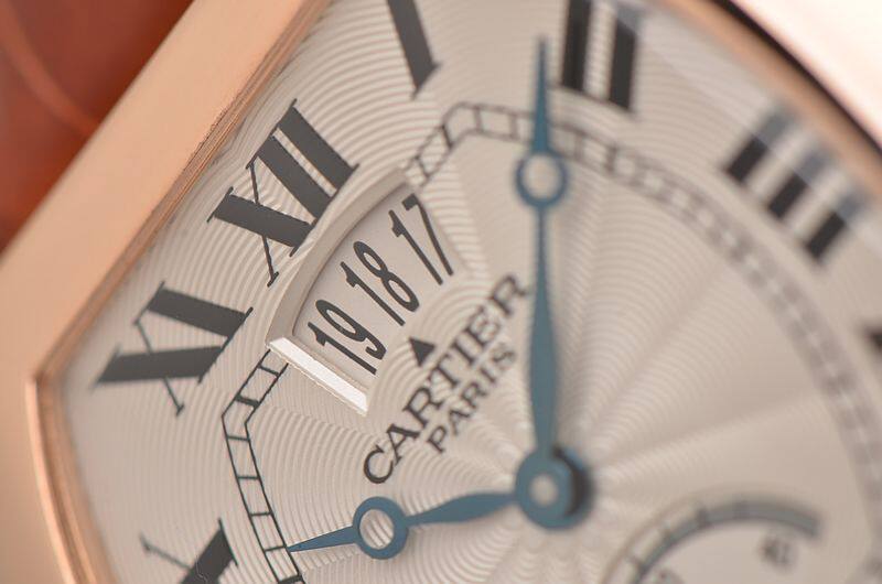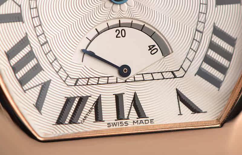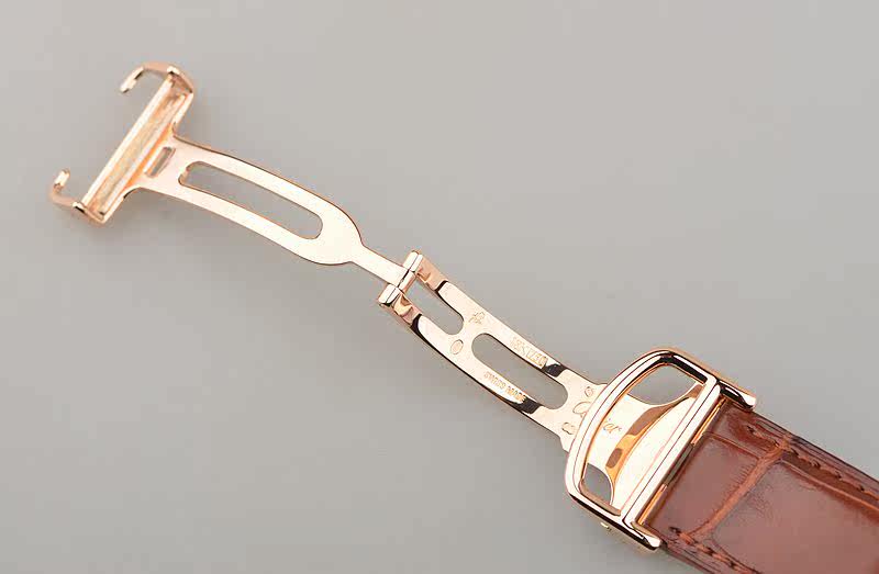 18K玫瑰金表壳及折叠式表扣,圣伯纳狗头印记。原厂棕色鳄鱼皮表带成色极新。蓝宝石水晶镜面及底盖,立体白色雕花表盘,黑色罗马刻度,蓝钢宝玑式指针。12点位大日历窗口,6点位指针式动力储备显示。蓝宝石表冠。口径43MM*34.5MM*10.7MM,相当于圆表36MM左右大小。防水30M。