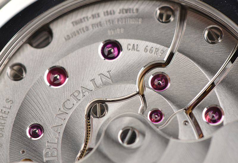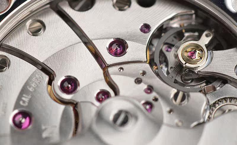 JB自产的CAL.66R9型机芯,自动机械,极其精致日内瓦条纹打磨,倒角抛光修饰。由325个零件组成,3个发条盒,36钻,摆频28800,动力储存高达192小时,八天链。5方位校正。18K白金镌刻自动转陀。走时状态极嘉。