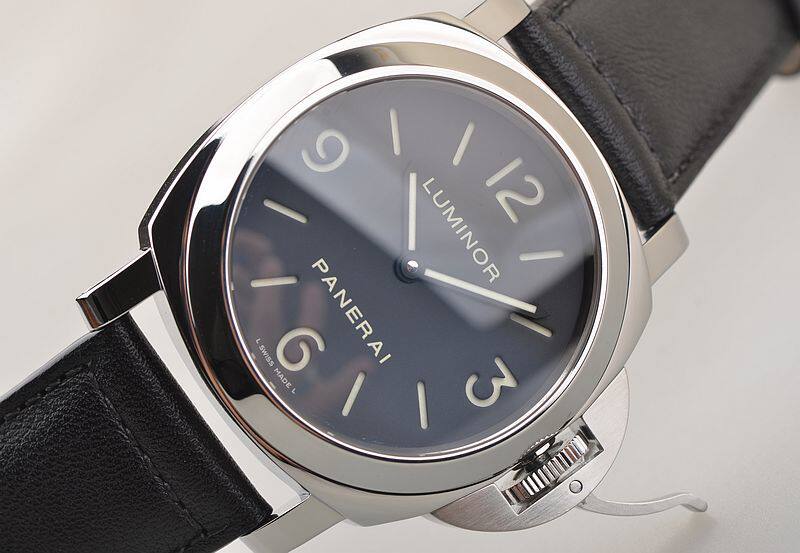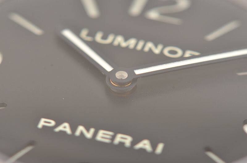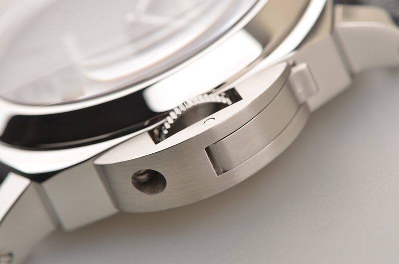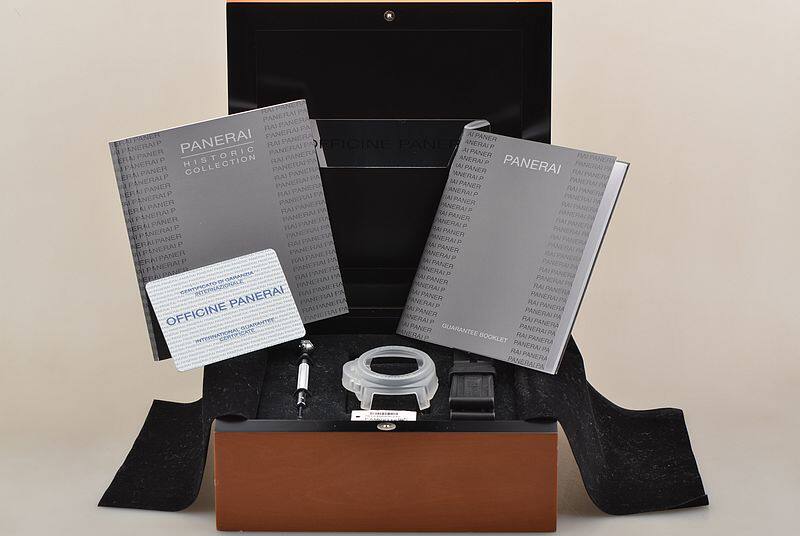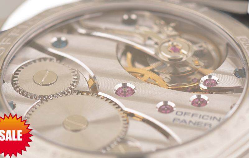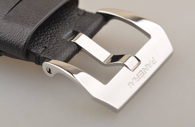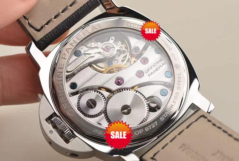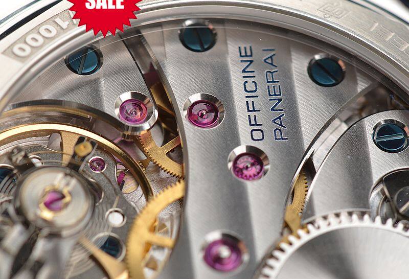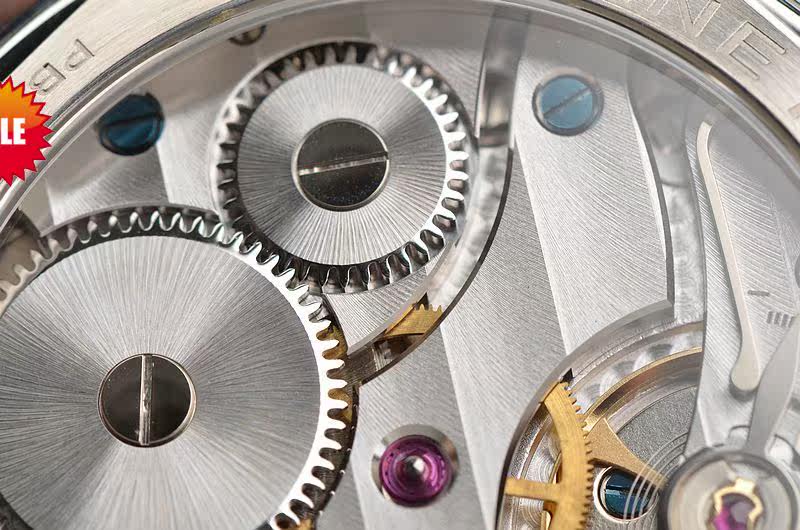 沛纳海OPX型机芯,手动上链,17钻,日内瓦条纹打磨,倒角抛光修饰,蓝钢螺丝,因加百录避震器,Nivarox游丝,鹅颈微调装置。摆频21600,动力储存约56小时。走时状态极嘉。