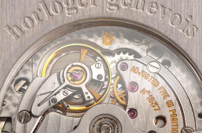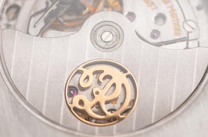 RD自产的CAL.57型机芯,该品牌是每一枚机芯全都通过日内瓦印记认证的顶级奢华腕表品牌,极其精致人手打磨,倒角抛光修饰,鹅颈微调,25钻,5方位校正,摆频28800,镂空玫瑰金品牌图腾自动陀,走时状态极嘉。