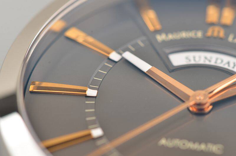 Maurice Lacroix ML143 I型机芯,自动机械,精致日内瓦条纹打磨,26钻,摆频28800,动力储存约38小时。