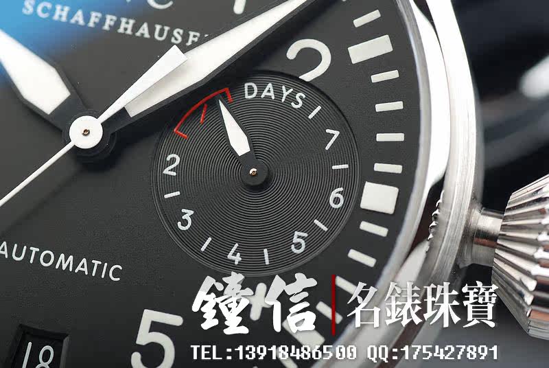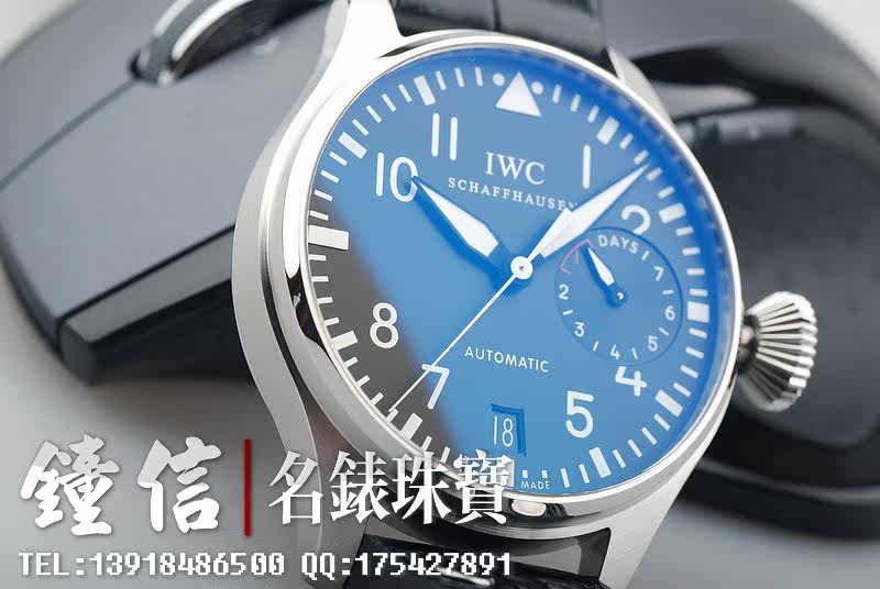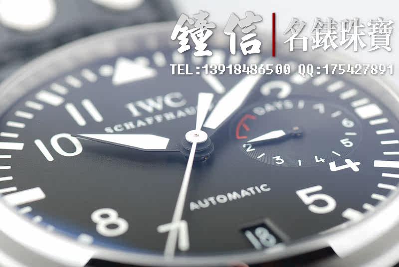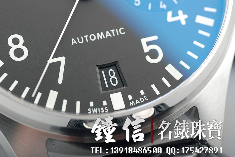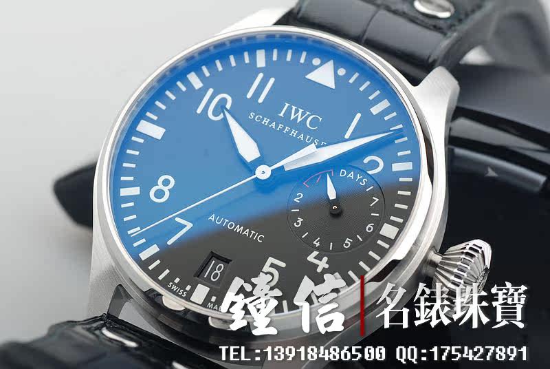 型号:IW500401,大型飞行精钢腕表配黑色鳄鱼皮表带