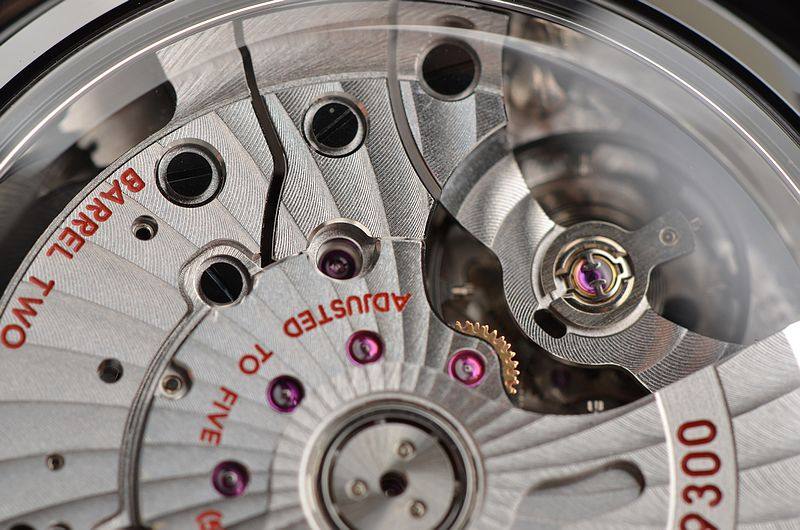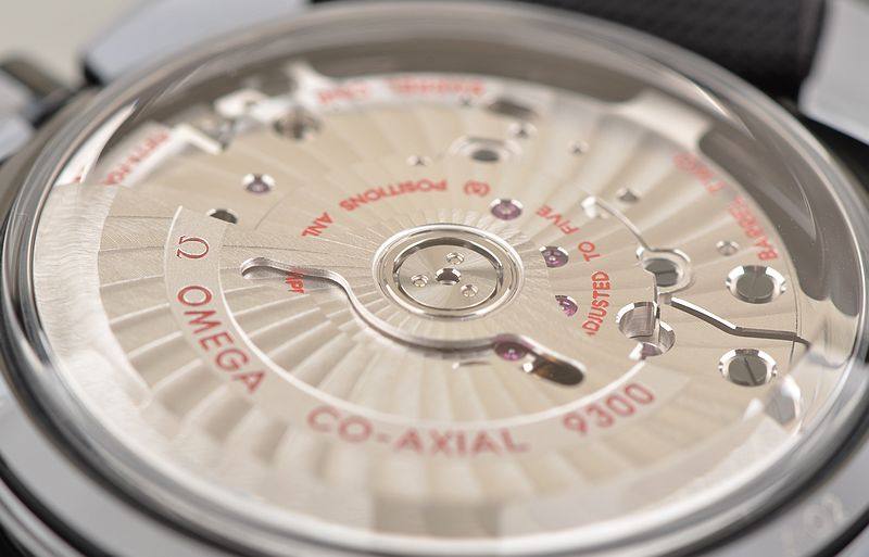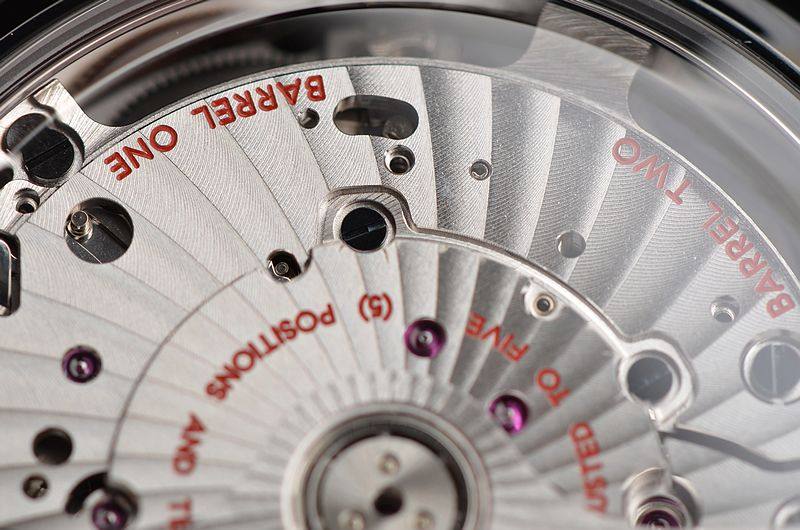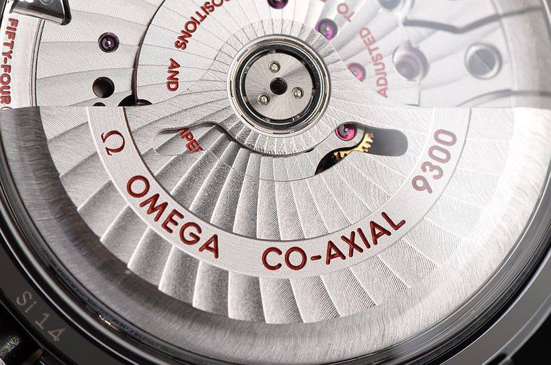 欧米茄自产的Cal.9300计时同轴自动机械机芯,获瑞士天文台认证。搭载带有SI14硅游丝的无卡度游丝摆轮和接续排列的双发条盒,双向自动上链系统。机芯镀铑,表面饰有独特的阿拉伯风格日内瓦波纹。摆频28800,动力储备约60小时。走时状态极嘉。