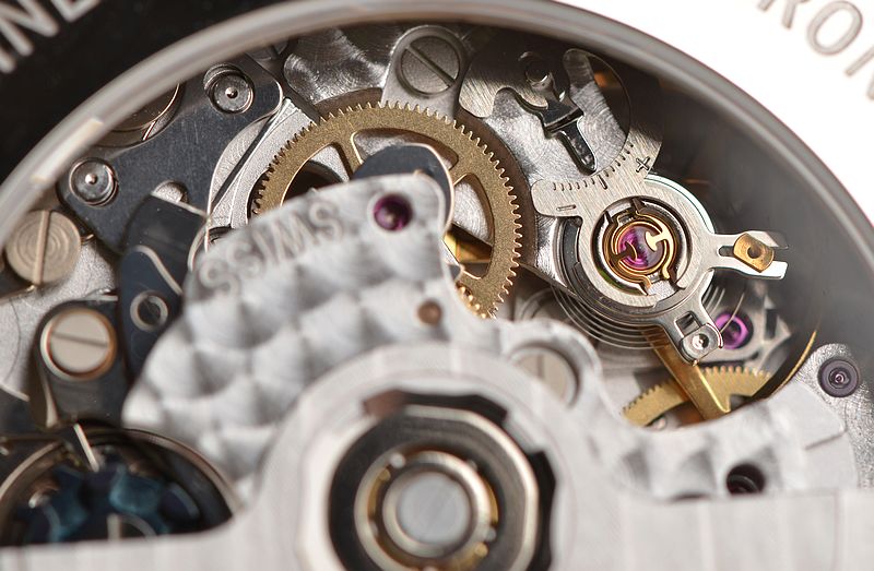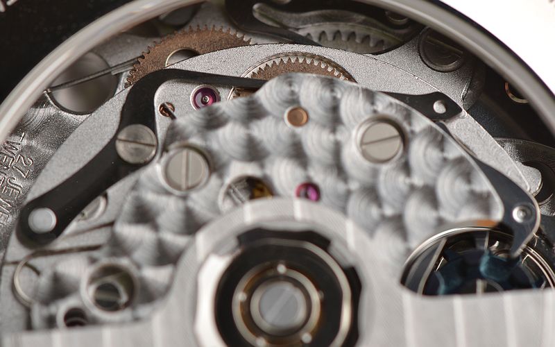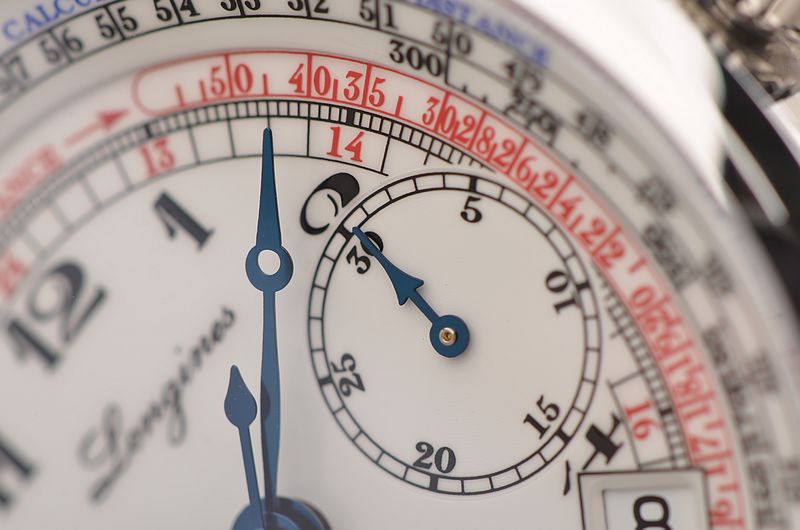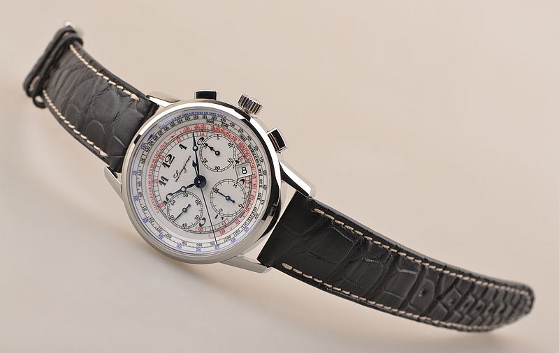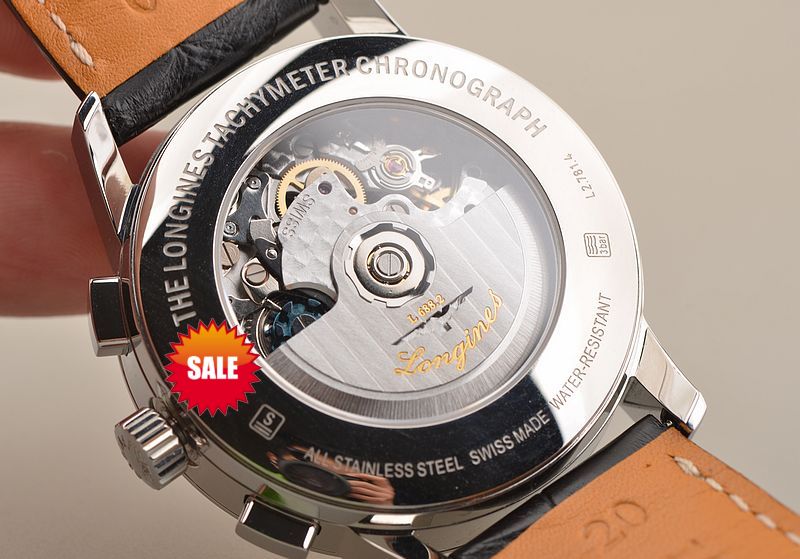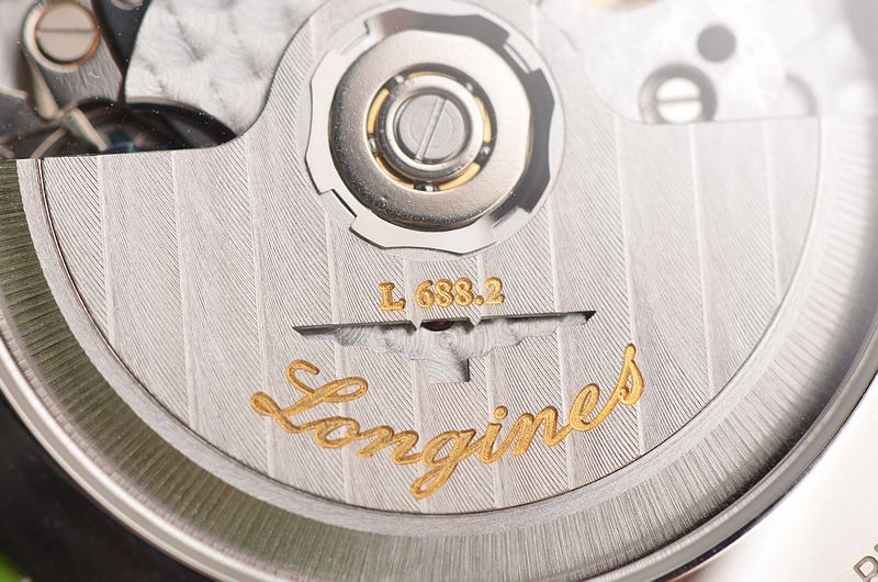 浪琴L688.2型机芯,自动上链导柱轮计时机芯,精美的日内瓦波纹及鱼鳞纹打磨,蓝钢导柱轮,27钻,摆频28800,动力储备约54小时,走时状态极嘉。