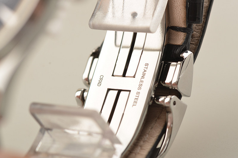 精钢表壳及折叠式表扣,原厂黑色鳄鱼皮表带成色很新。蓝宝石水晶镜面,立体黑色万年历表盘,太妃指针,动能储备显示,月相显示功能。口径39MM*9.2MM。防水50M。