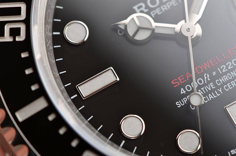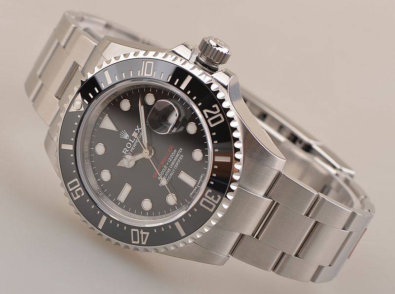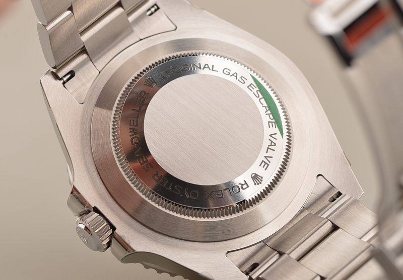 904L精钢表壳及链带,可微调潜水折叠表扣(蚝式保险摺扣配劳力士Glidelock延展系统;蚝式摺扣伸缩链节)。黑色单向旋转陶瓷计时表圈。蓝宝石水晶镜面,立体黑色表盘,夜光奔驰指针及刻度。3点位放大镜日历。天文台精密时计(Superlative Chronometer)认证标识。表壳侧面9点位排氦气阀装置。专业潜水用表。旋入式防水表冠。口径43MM*16MM,防水深达1220M。