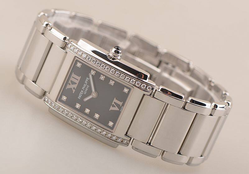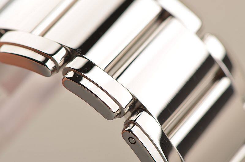 精钢表壳及链带,双向折叠式表扣。蓝宝石水晶镜面,夜光时分针。“黑色长存Forever Black”表盘,白金时标镶嵌10颗钻石,表框两侧共镶嵌36颗顶级威塞尔顿钻石,共计约0.45克拉。表冠镶嵌一颗缟玛瑙。口径:25MM*30MM*6MM,相当于圆表30MM左右大小。防水25M。