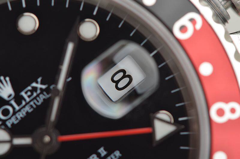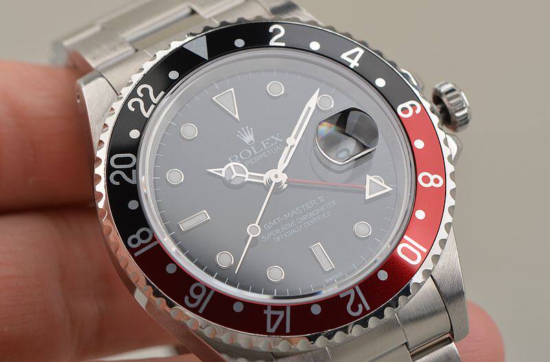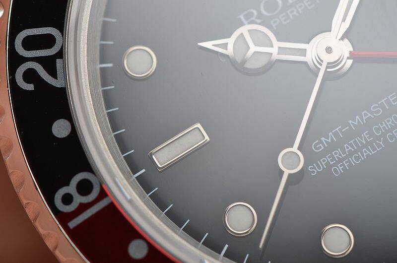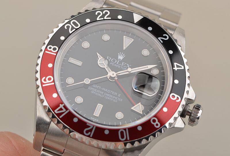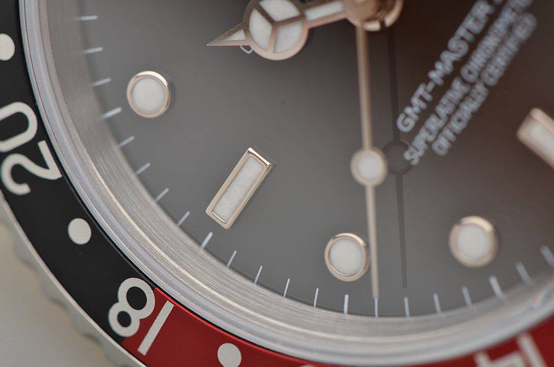 904L精钢表壳及链带,可微调折叠式表扣。原厂原装红黑可乐圈。蓝宝石水晶镜面,立体罕有黑色单SWISS表盘(只在交接期极短几个月内有此面盘),夜光刻度及指针,GMT第二时区功能,3点位放大镜日历视窗。旋入式防水表冠。口径40MM*13MM。防水100M。