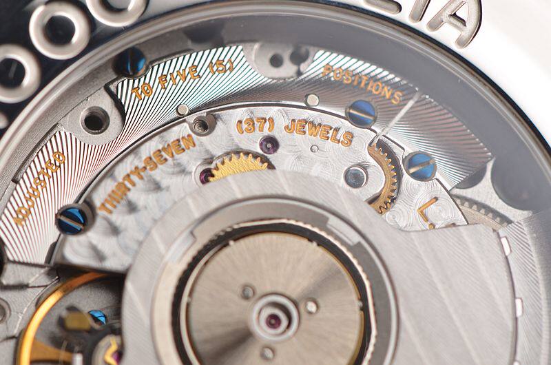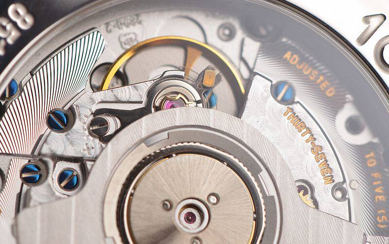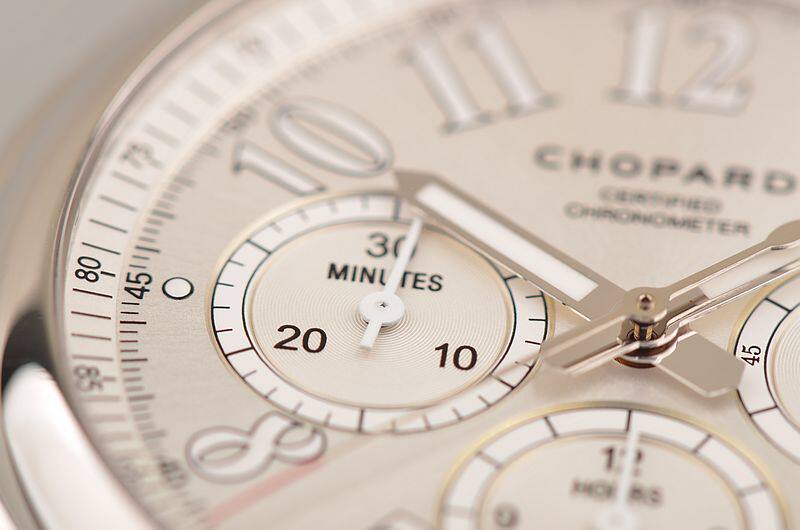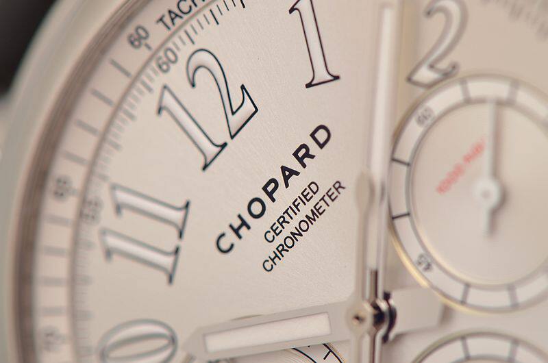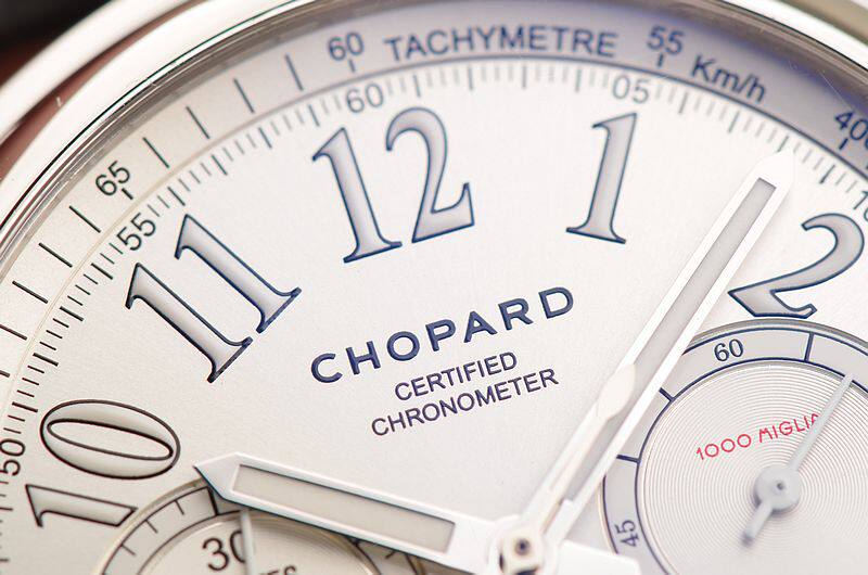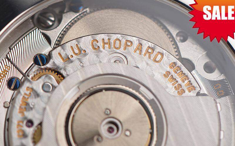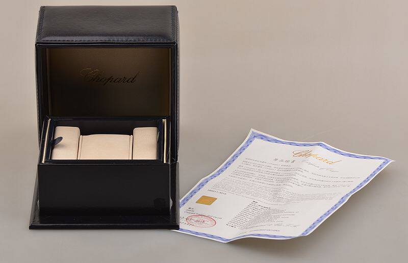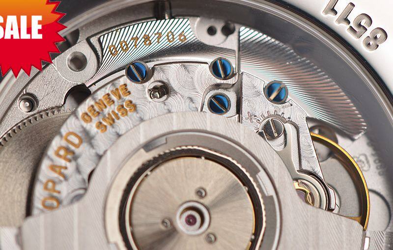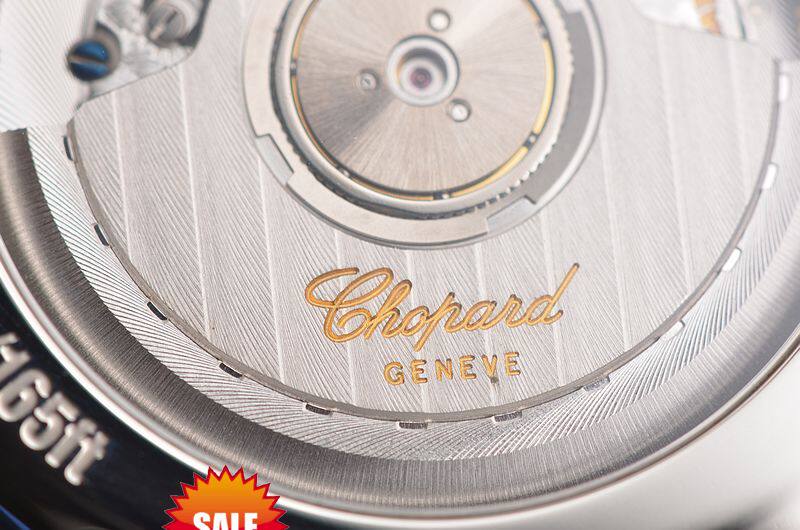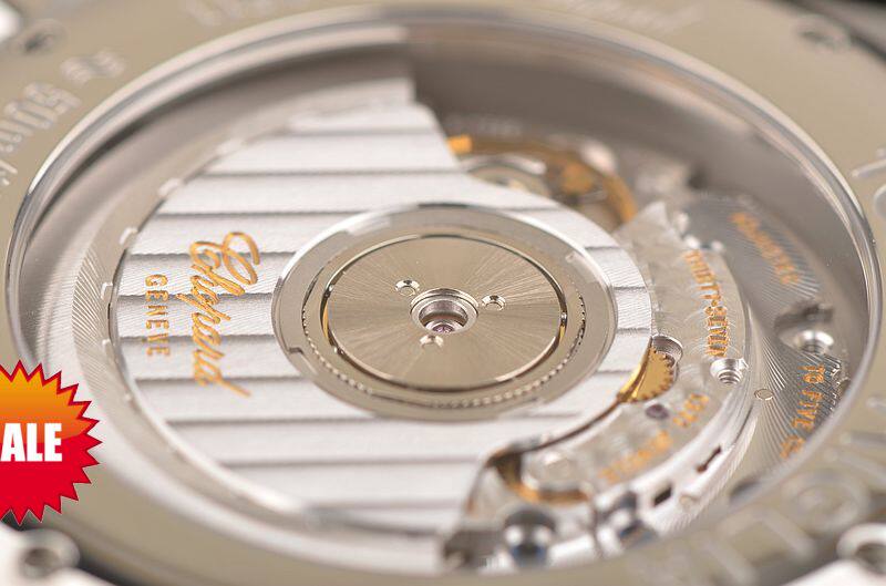 萧邦自动机械计时机芯,极其精致日内瓦条纹打磨及鱼鳞纹打磨,37钻,摆频28800,5方位校正,动力储存约42小时,走时状态极嘉。