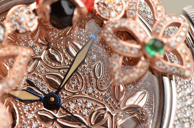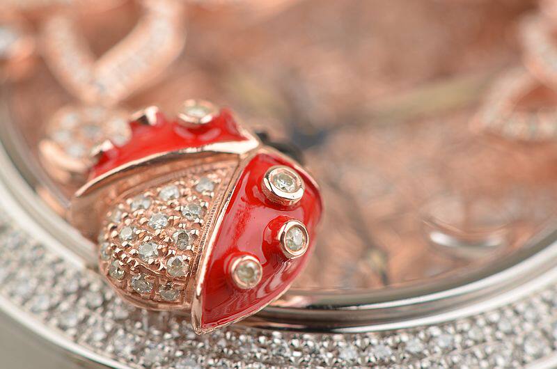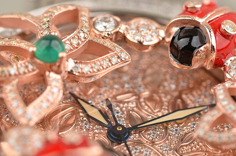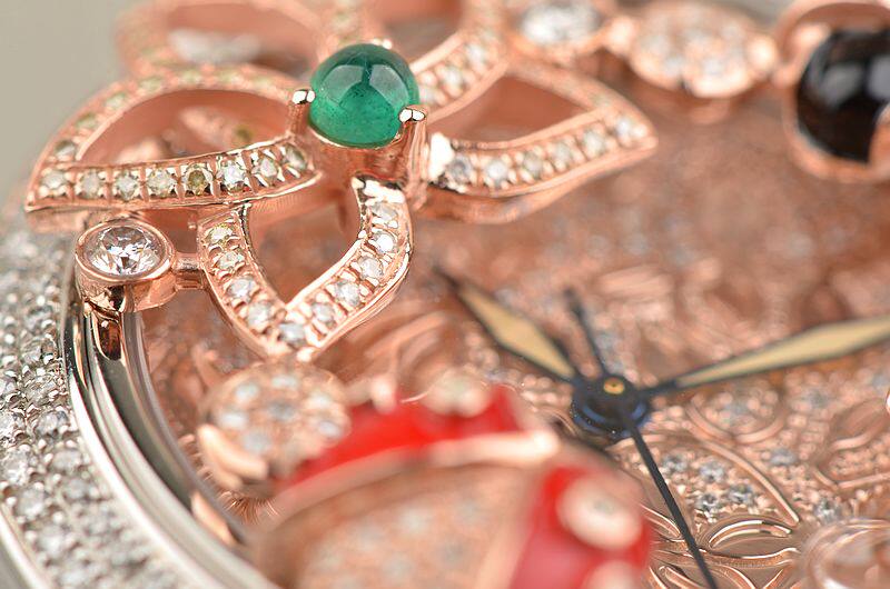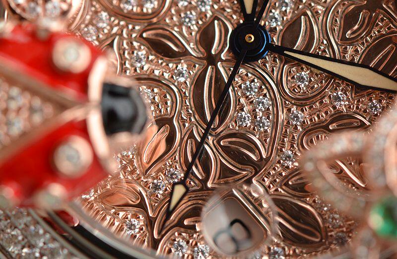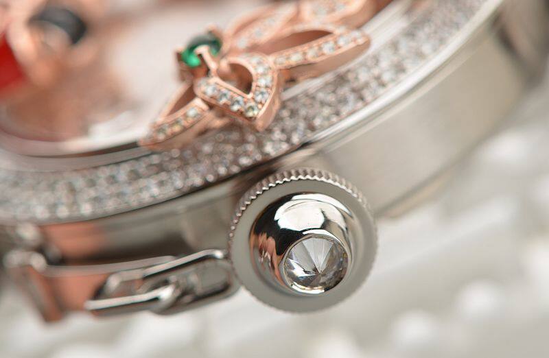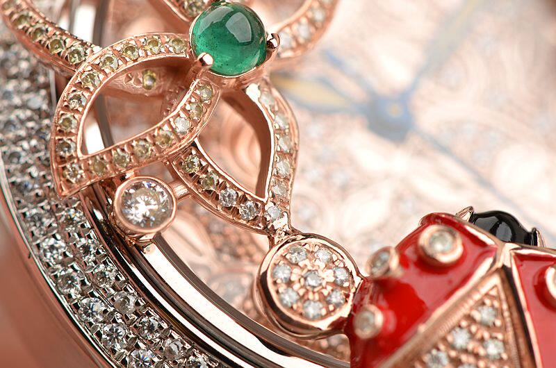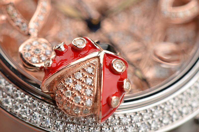 卡地亚帕莎自动机械女表后镶钻七星瓢虫款 口径35.5MM*13MM,后镶顶级豪华天然美钻,防水100M。原镶钻款式定价约100万RMB,现在价格:33800RMB。可配皮带,供色板挑选。
