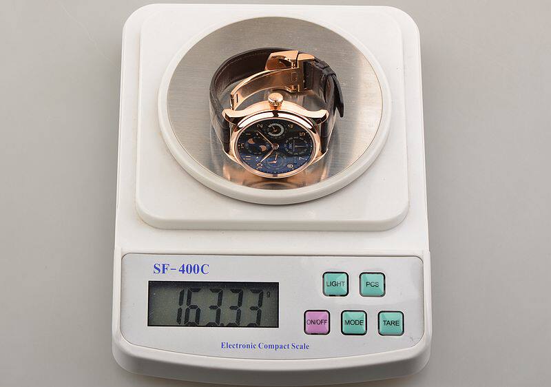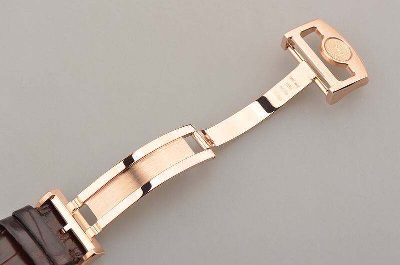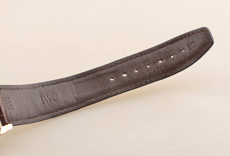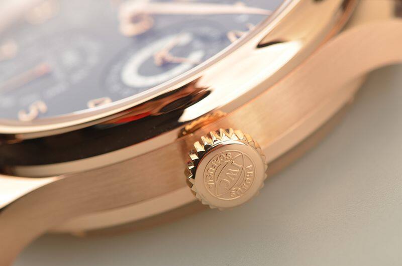 18K玫瑰金表壳及折叠式表扣(新款IWC徽章表扣),圣伯纳狗头印记。原厂棕色鳄鱼皮表带成色极新。抗反光涂层蓝宝石水晶镜面及底盖,立体黑色万年历表盘,玫瑰金指针及刻度,12点位南北月相显示(理论上577.5年后,才需将手表交给制表师调整一天的误差,比普通月相精准度大大提升。)9点位指针式星期显示及独立小秒针,6点位指针式月份显示,7点位数字排列式年份显示,3点位指针式日历显示及7天动能储备显示。口径44.2MM*15.5MM。防水30M。