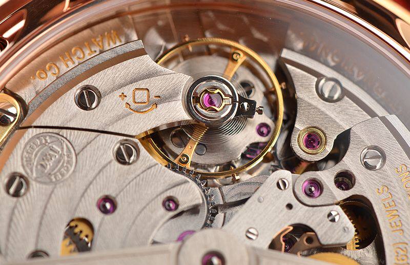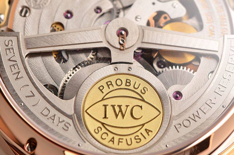 IWC自产的CAL.51614型机芯,自动机械,极其精致日内瓦条纹打磨,比勒顿上弦系统,宝玑游丝,自动摆陀饰以18K金质勋章,高达64钻,双发条盒,摆频21600,5方位校正,7天长动力储存。机芯有独立签署。走时状态极嘉。