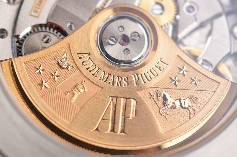 AP自产CAL.3120型机芯,自动机械,由280个零件组成,极其精致日内瓦条纹打磨,倒角抛光修饰。40钻,摆频21600,5方位校正,22K玫瑰金镌刻自动转陀,动力储存约60小时,走时状态极嘉。