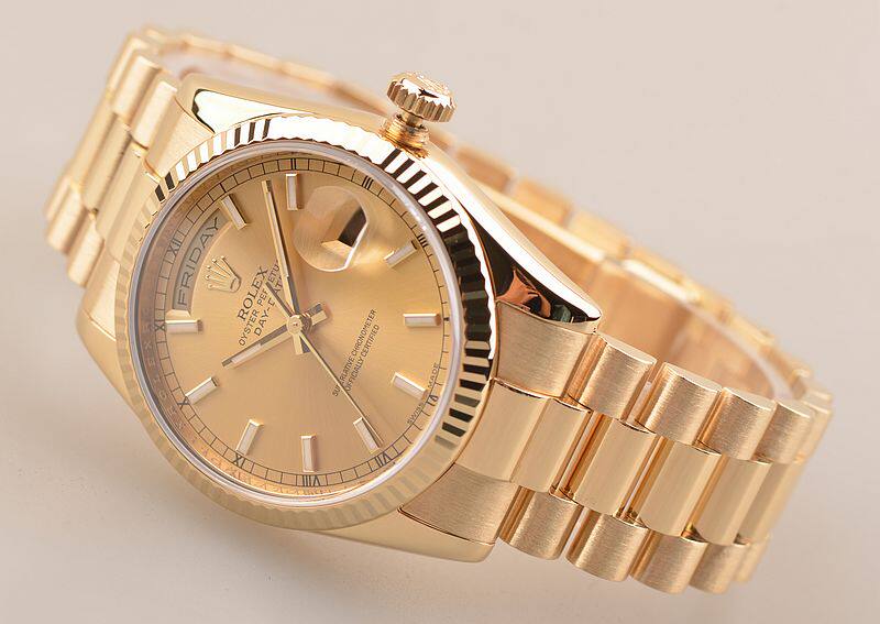 这是Rolex今天的旗箭产品,表迷中把他简单的称之为DD,作为今天耗式恒动产品线中最GAO端的Rolex,DD的外壳全部使用了贵金属,其实从Rolex的历史上看,最早的DD应该是President系列,也就是因为美国总统曾经酷爱佩戴Rolex的全金DD,所以后来此表一举成名。
