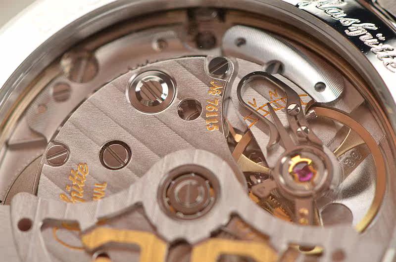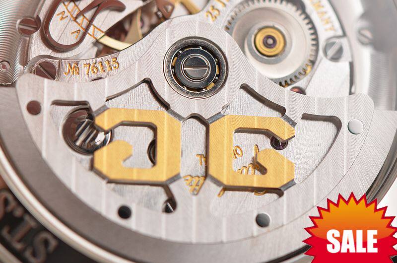 GO自产CAL.39-22型机芯,自动机械,极其精致人手条纹打磨,倒角抛光修饰,标准德式3/4大夹板机芯,鹅颈微调,黄金镌刻镂空自动转陀,25钻,摆频28800,动力储存约40小时,走时状态极嘉。