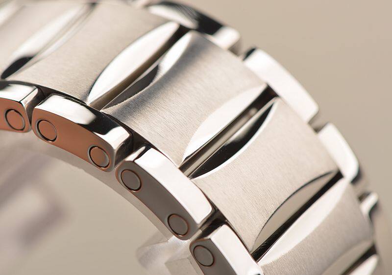 精钢表壳及链带,折叠式表扣。蓝宝石水晶镜面及底盖,立体灰色太阳纹表盘,大三针设计,6点位日历显示功能。口径36MM*10.2MM,防水50M。