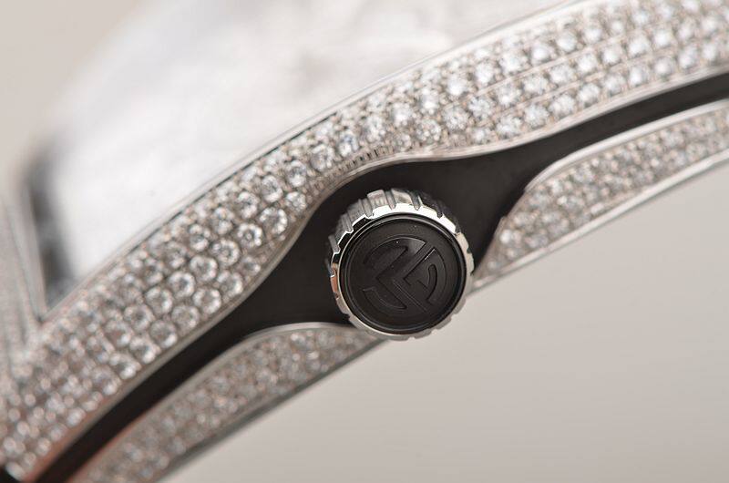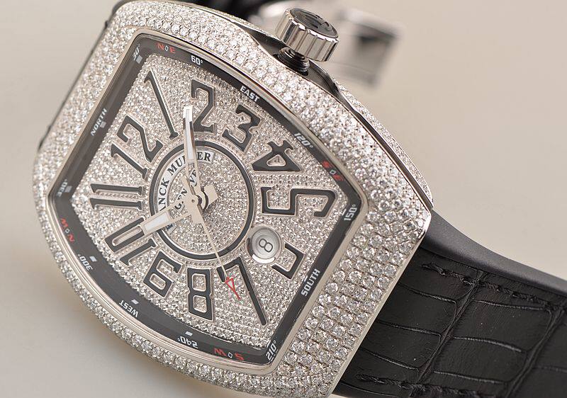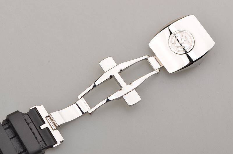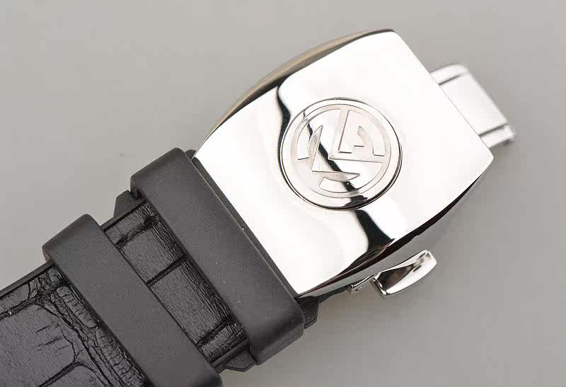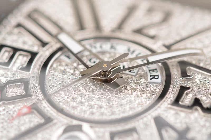 精钢表壳及折叠式表扣,原厂全新黑色缝鳄鱼皮橡胶带。蓝宝石水晶镜面,表壳,表盘后镶天然豪华美钻。阿拉伯数字刻度,夜光时分针,6点位日历显示功能。口径53.5MM*44MM*12.8MM,相当于圆表45MM左右大小。旋入式防水表冠,防水100M。