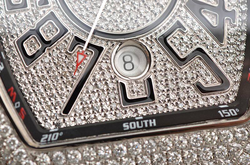 法兰克穆勒FM 0800型机芯,自动机械,由158个零件组成,21钻,摆频28800,PT950铂金自动转陀,动力储存约42小时,走时状态极嘉。