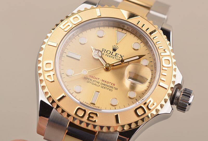 18K黄金及904L精钢表壳及链带,折叠式表扣。18K黄金可旋转计时表圈。蓝宝石水晶镜面,立体香槟金色表盘,夜光刻度及指针,旋入式防水表冠。口径40MM*12.8MM,防水100M。