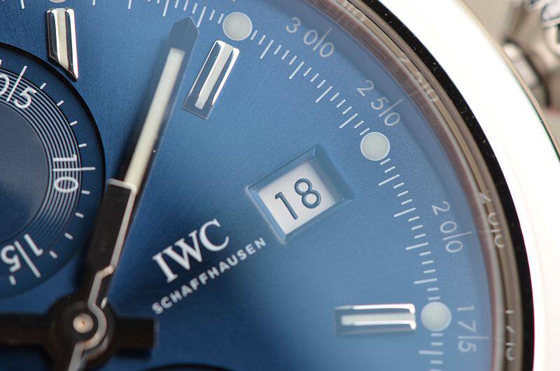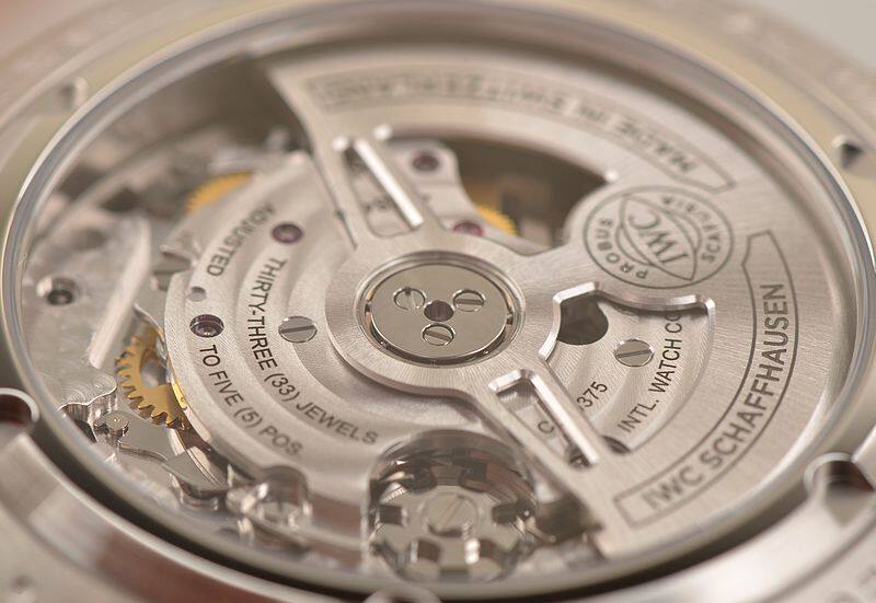 IWC自产的CAL.69375型机芯,自动机械,极其精致日内瓦条纹打磨,倒角抛光修饰,33钻,摆频28800,5方位校正,动力储存约46小时,走时状态极嘉。