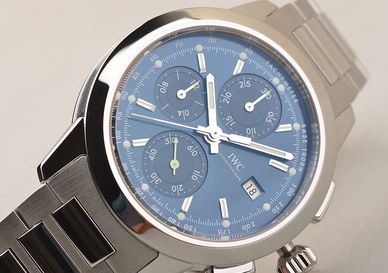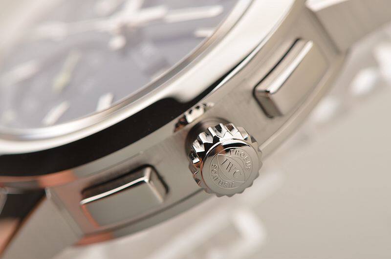 精钢表壳及链带,折叠式表扣。蓝宝石水晶镜面及底盖,立体蓝色计时表盘,夜光指针及刻度,12点位30分钟计时,9点位12小时计时,6点位独立小秒针,3点位日历显示功能。口径42MM*14.9MM,防水120M。