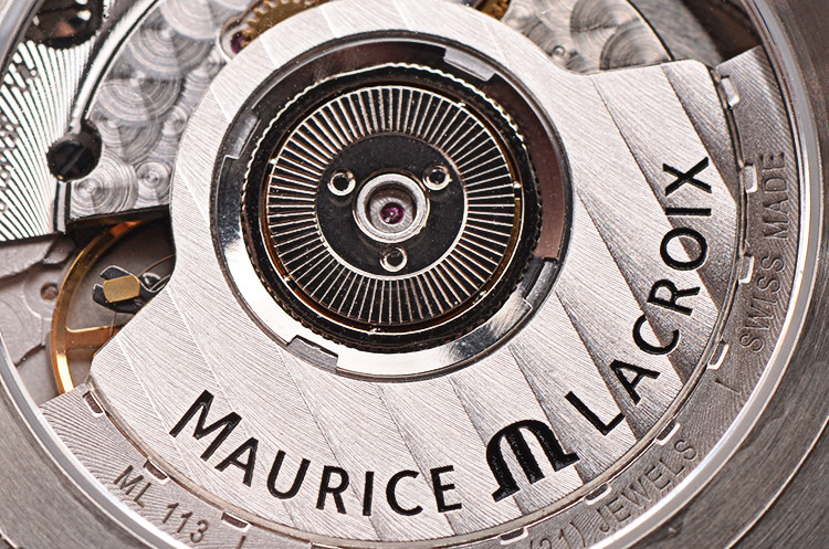 Maurice Lacroix ML113 I型机芯,自动机械,精致日内瓦条纹打磨,21钻,摆频28800,动力储存约42小时。