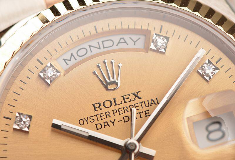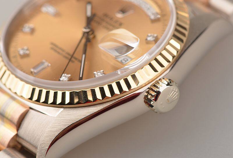 Oyster Perpetual Day-date Tridor 蚝式恒动总统型星期日历三色金男表 (产量极少,又称“彩虹带劳力士”)