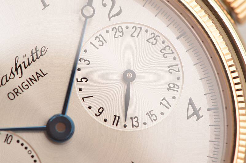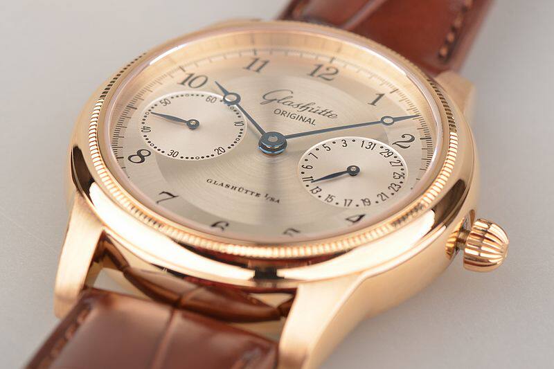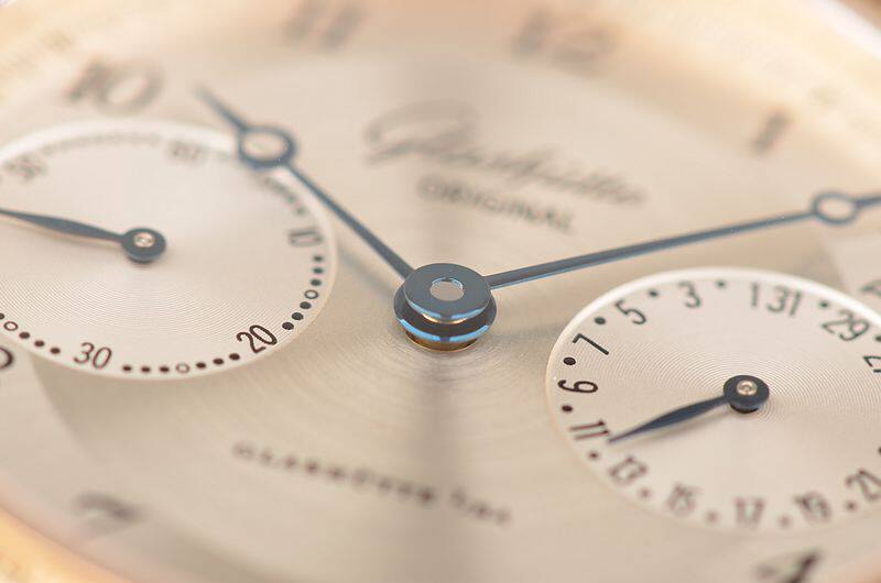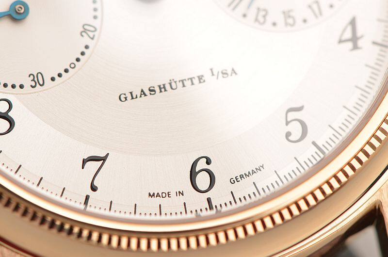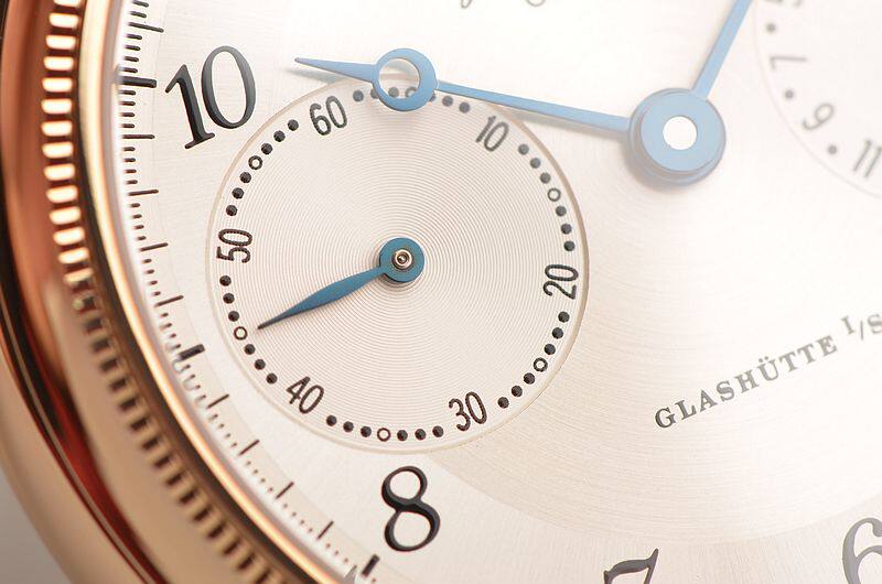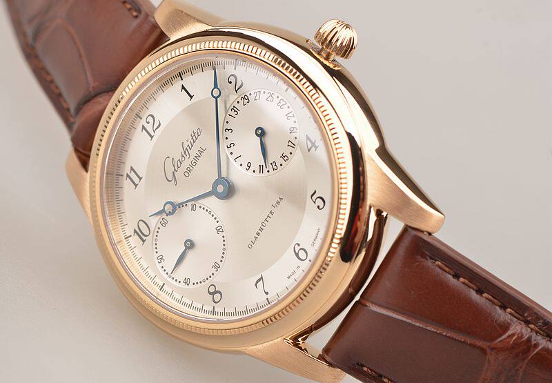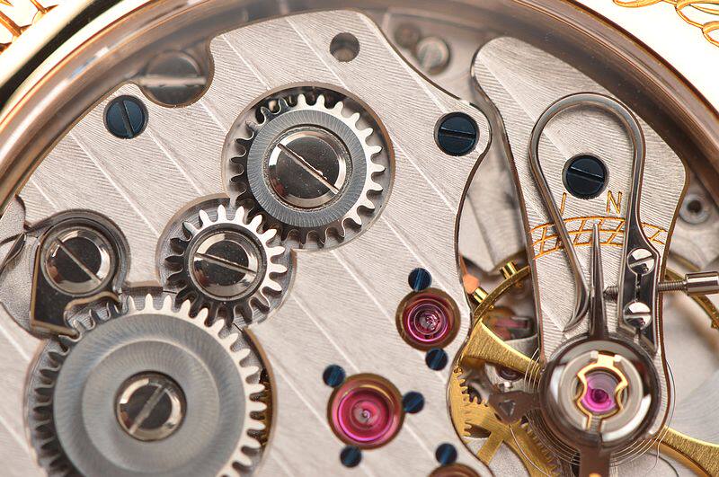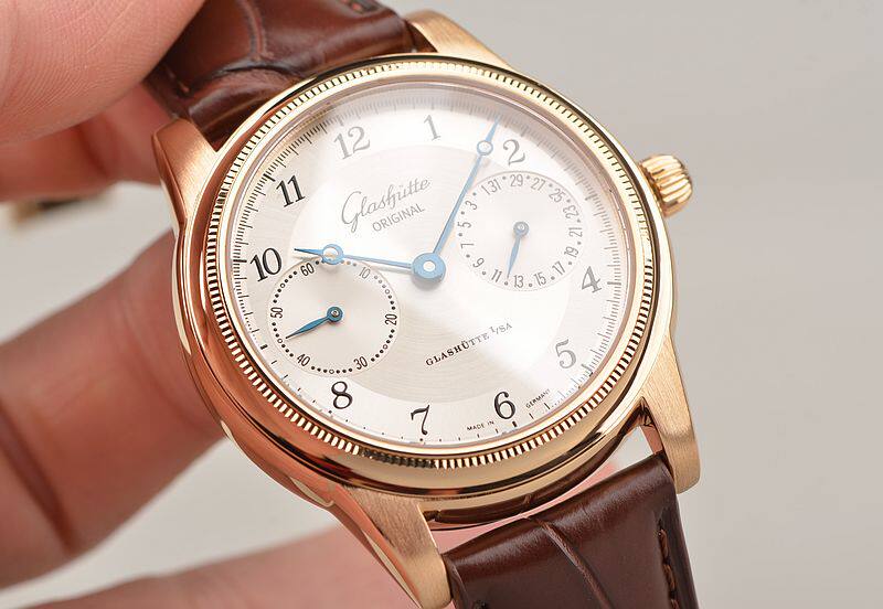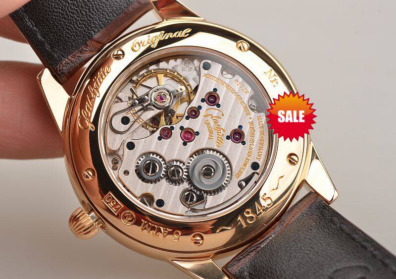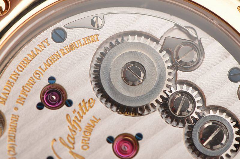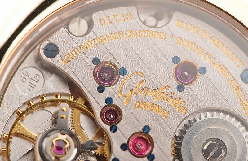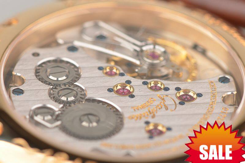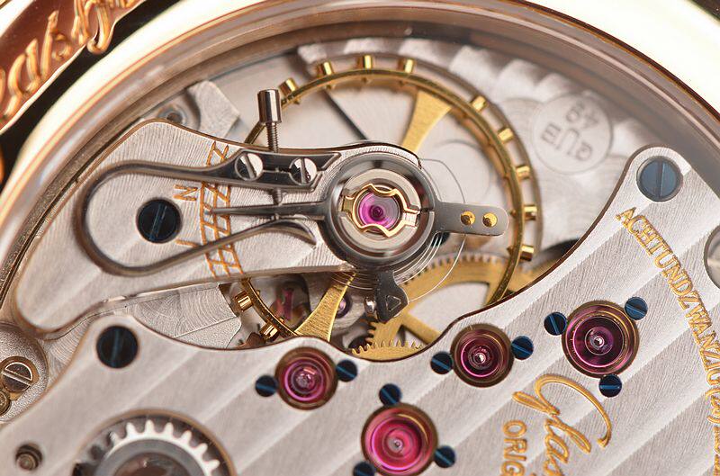 GO自产鼎级CAL.49-02型机芯,该机芯原先只应用于鼎级系列中,手上链,极其精致人手条纹打磨,标准德式3/4型机芯,倒角抛光修饰,黄金套筒,鹅颈微调,28钻,摆频28800,5方位校正,机芯有独立签署,走时状态极嘉。