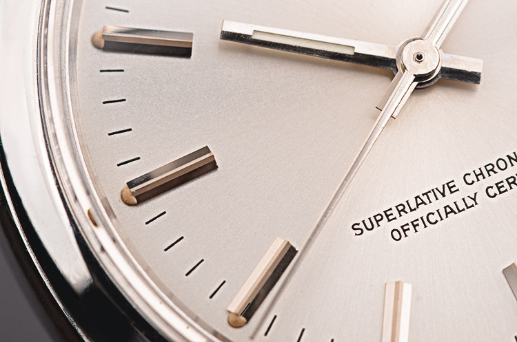 劳力士自产CAL.1570型机芯,一代经典机芯,被誉为二十世纪最优质的机芯之一,双层游丝,Microstella微调机制,“红轮仔”,坚固耐用,故障率极低。自动机械,天文台认证,26钻,摆频19800,走时状态极嘉。
