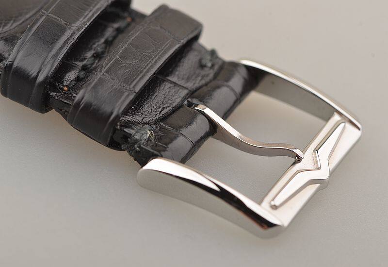 精钢表壳及表扣,全新原厂黑色鳄鱼皮表带。蓝宝石水晶镜面,立体银白色表盘,大三针设计,闹铃功能。口径39MM*11MM。防水30M。
