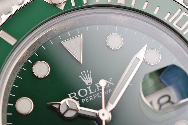 904L精钢表壳及链带,Glidelock可调节折叠带扣。绿色陶瓷渐进式旋转Cerachrom外圈,立体绿色表盘,18K白金夜光刻度及指针,3点位放大镜日历视窗。旋入式防水表冠。口径40MM*13.6MM,防水300M。
