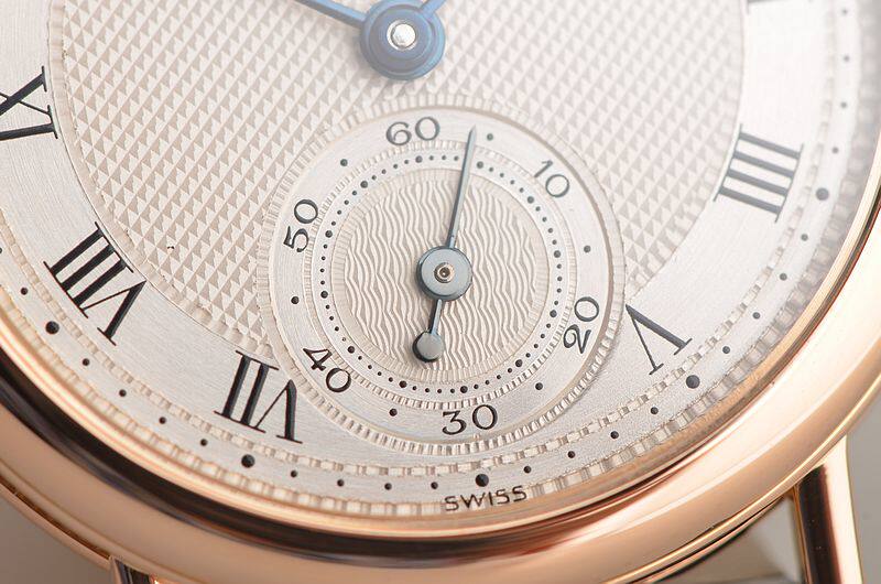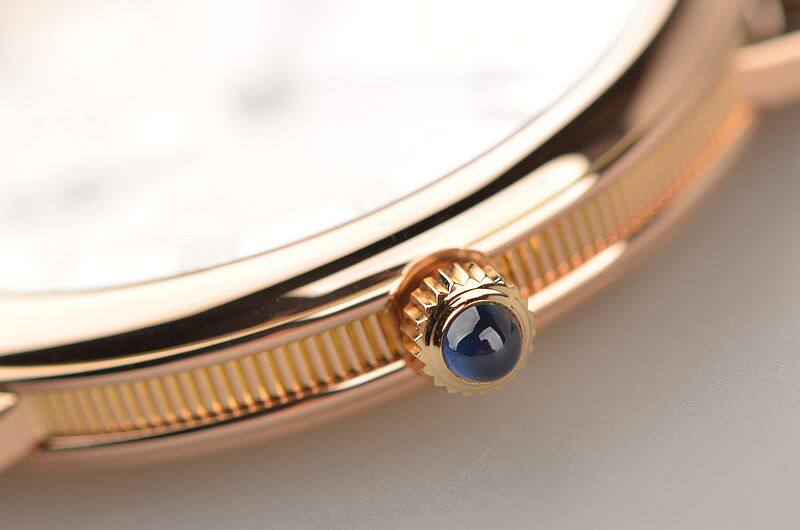 宝玑自产手上链机芯,极其精致日内瓦条纹打磨,倒角抛光修饰。摆频18000,走时状态极嘉。