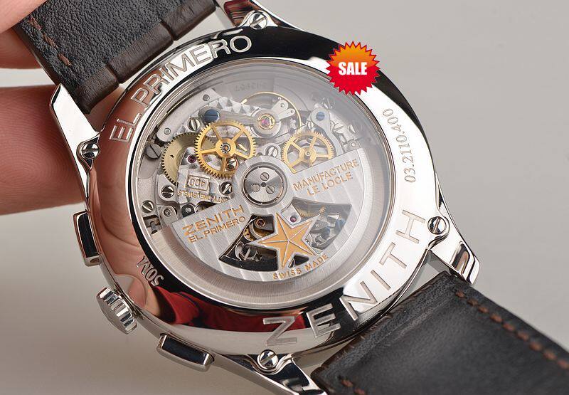 真力时自产的 El Primero Caliber 400 B型机芯,自动机械,精致日内瓦纹及鱼鳞纹打磨,计时及日历功能。由326个零件组成,KIF避震器,31钻,摆频36000,高频计时码表,动力储备约50小时。走时状态极嘉。