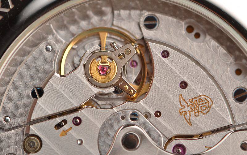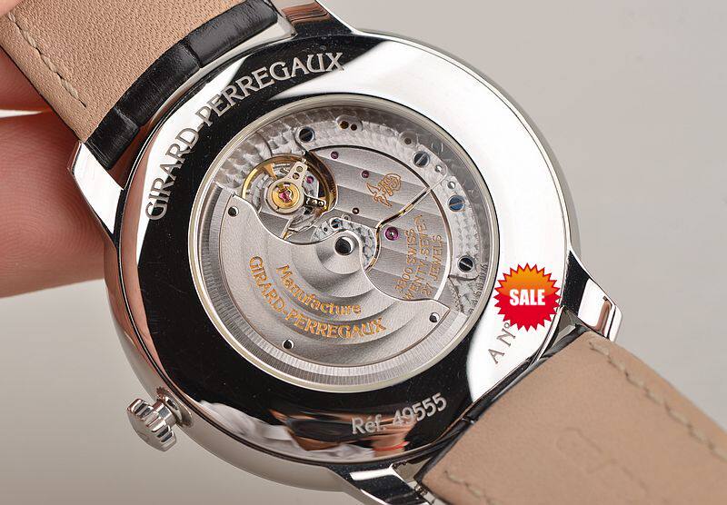 GP自产CAL.GP03300-0030型机芯,自动机械,精致日内瓦条纹打磨,倒角抛光修饰。由218个零件组成,27钻,摆频28800,动力储存约46小时,走时状态极嘉。