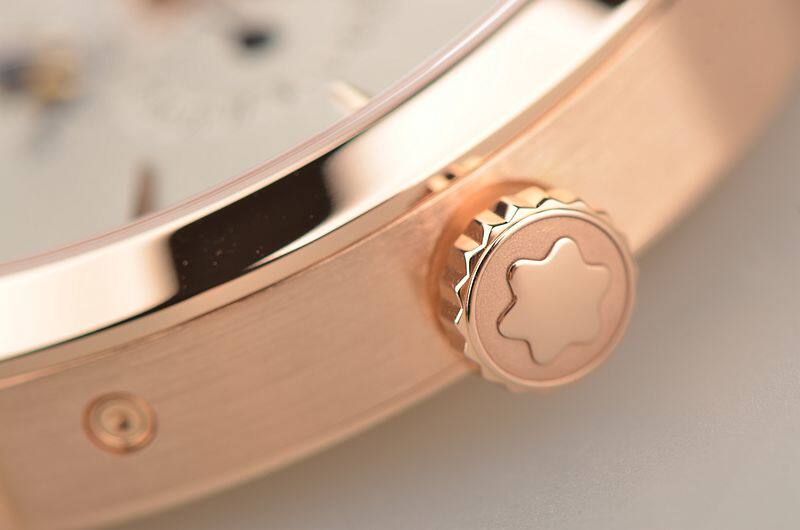 万宝龙自产CAL.MB 29.15型机芯,自动机械,精致日内瓦条纹打磨,25钻,摆频28800,动力储存约42小时,走时状态极嘉。