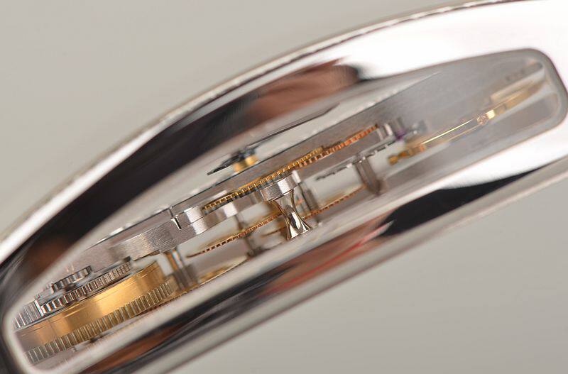 昆仑自产CAL.CO113型金桥机芯,手上链,精致人手打磨,19钻,摆频28800,动力储存约40小时,走时状态极嘉。