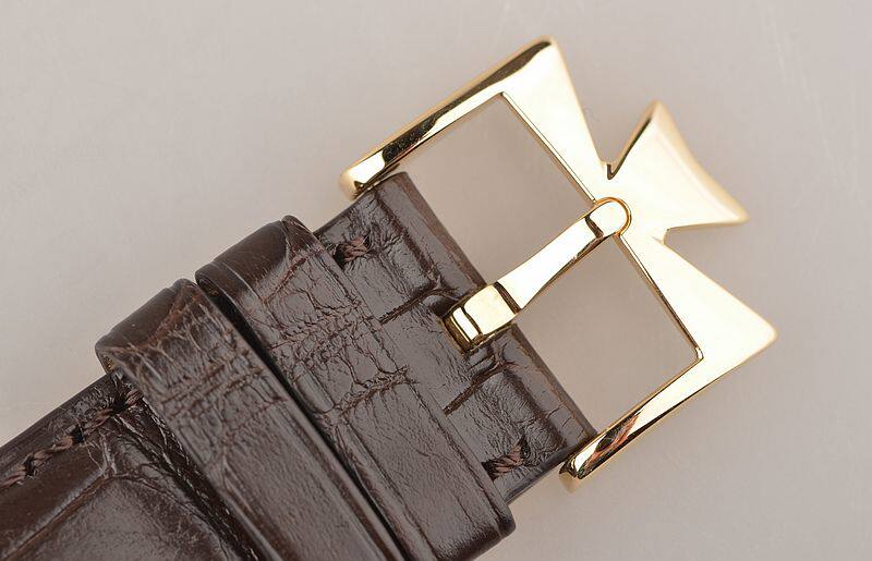 18K黄金表壳及表扣,圣伯纳狗头印记。后配全新深棕色鳄鱼皮表带。蓝宝石水晶镜面及底盖,立体银白色精雕表盘,黄金刻度及时分针,12点位附有1755年-2005年(江诗丹顿250周年纪念)签名。3点位日历显示窗口,6点位动力储备显示,9点位星期显示功能。4至5点位间黄金日内瓦印记标识(VC唯一款表盘正面签名日内瓦印记腕表)。口径40MM*12.6MM。防水30M。