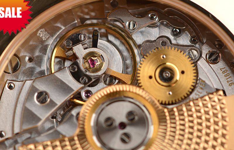 江诗丹顿自产CAL.2475型机芯,自动机械,极其精致日内瓦条纹打磨,倒角抛光修饰。27钻,5方位校正,摆频28800,22K黄金镌刻自动转陀,动力储存约43小时,走时状态极嘉。