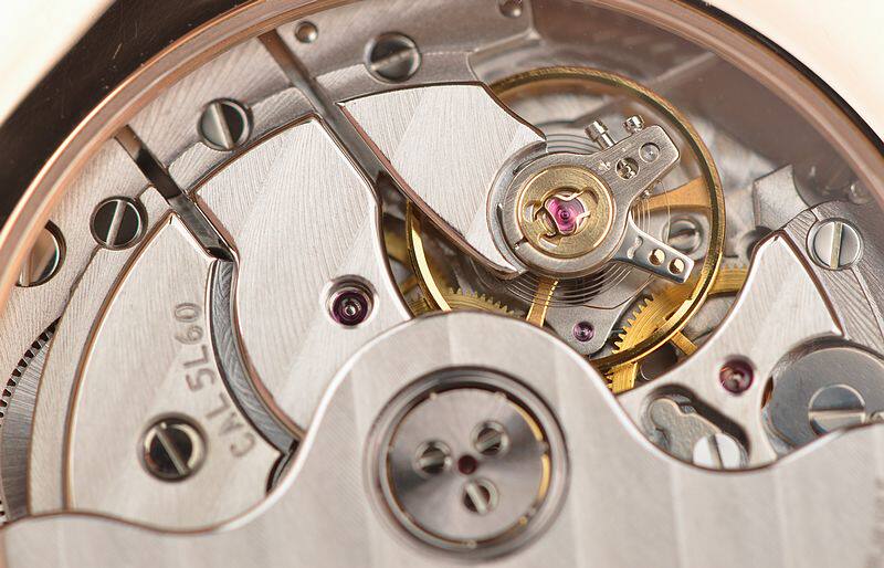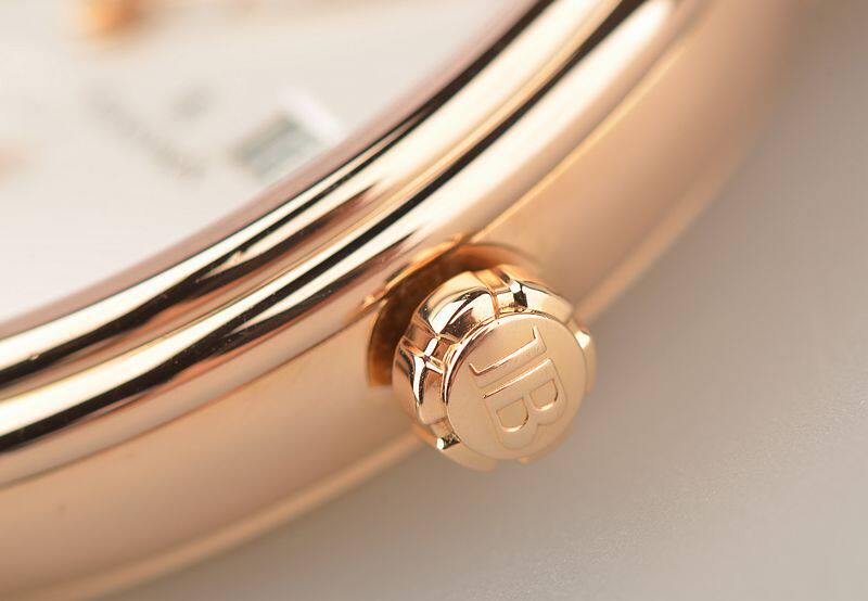 JB自产的CAL.5L60型机芯,自动机械,100小时长动力机芯,四天链,极其精致日内瓦条纹打磨,倒角抛光修饰,30钻,摆频21600,5方位校正。18K白金镌刻自动转陀配重,走时状态极嘉。