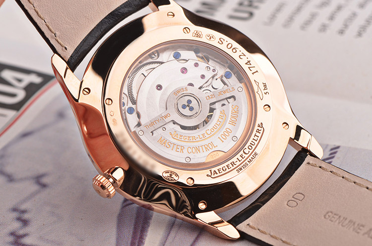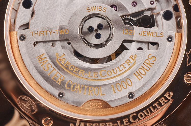 积家自产的CAL.896型机芯,自动机械,由242个零件组成,1000小时测试标准,极其精致日内瓦条纹打磨,32钻,摆频28800,KIF避震器。机芯独立签署,22K玫瑰金自动陀边配重,动力储备约43小时。走时状态极嘉。