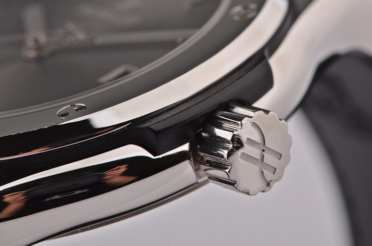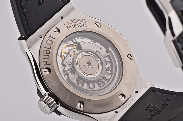 宇舶CAL.1112型机芯,自动机械,精致日内瓦条纹打磨,倒角抛光修饰。品牌Logo镂空自动转陀,由62个零件组成,25钻,摆频28800,动力储存约40小时。走时状态极嘉。