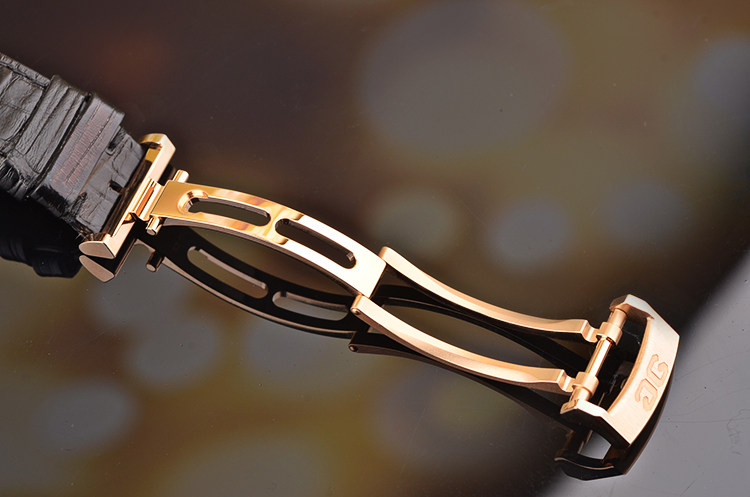 18K玫瑰金表壳及折叠式表扣,圣伯纳狗头印记。原厂黑色路易斯安娜短吻鳄鱼皮表带成色很新。蓝宝石水晶镜面及底盖,立体磨砂白色表盘,蓝钢桃心指针,10点位月龄月相功能,4点位大日历显示功能。口径40MM*11MM。防水50M。
