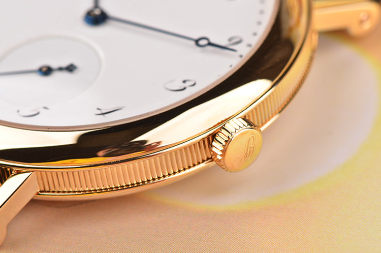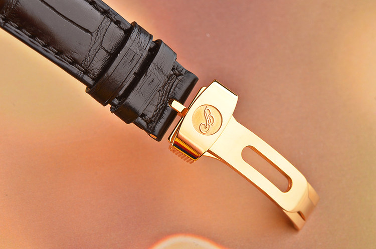 宝玑自产的CAL.502.3SD型机芯,自动机械,极其精致日内瓦条纹打磨,倒角抛光修饰。由140个零件组成,35钻,摆频18000,22K黄金镌刻自动摆陀。动力储存约46小时,走时状态极嘉。