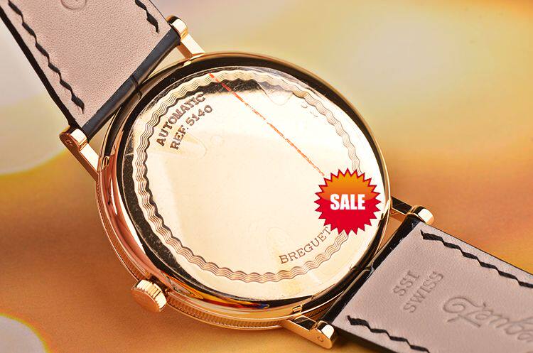 18K黄金宝玑钱币纹表壳及折叠式表扣,圣伯纳狗头印记。后配全新黑色鳄鱼皮表带。蓝宝石水晶镜面,著名的大明火珐琅表盘,表盘LOGO下方镌刻防伪签名,宝玑烧蓝钢鱼眼指针,古典宝玑阿拉伯数字刻度,5点位独立小秒针。口径40MM*10.8MM。防水30M。