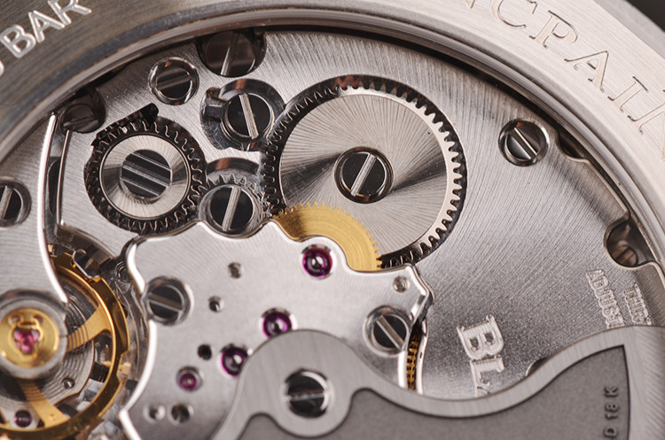 宝珀自产的CAL.1315型机芯,自动机械,极其精致日内瓦条纹打磨,倒角抛光修饰。由227个零件组成,铂合金涂层18K金自动转陀,