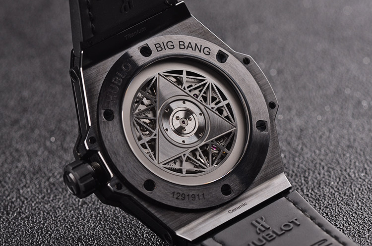 HUBLOT自产的Cal.HUB1213型机芯,自动机械,精致打磨,镂空自动转陀,28钻,摆频28800,动力储存约72小时(3天链)。走时状态极嘉。