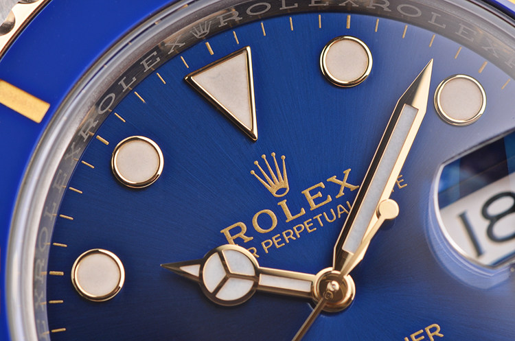 18K黄金及904L精钢表壳及链带,可微调折叠式搭扣。18K黄金及蓝色陶瓷计时表圈。蓝宝石水晶镜面,立体蓝色表盘,夜光奔驰指针及刻度,3点位放大镜日历视窗。旋入式防水表冠。口径40MM*13MM。防水300M。