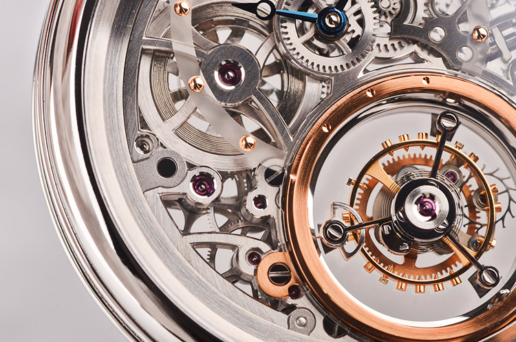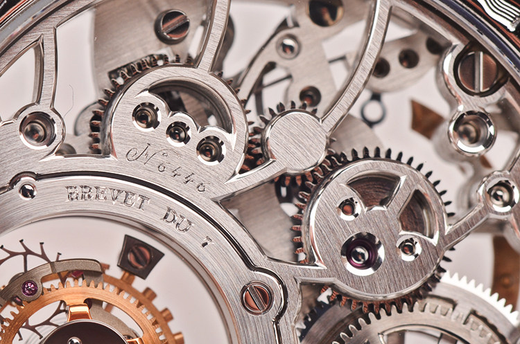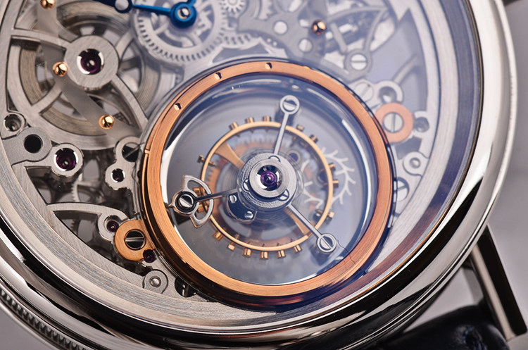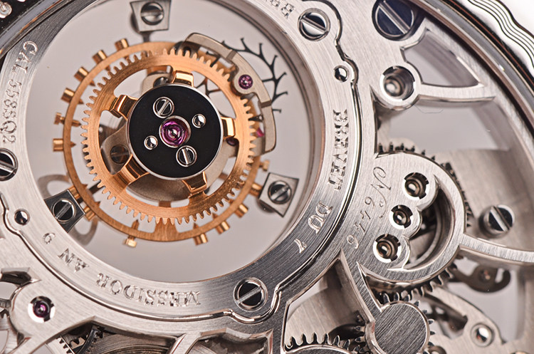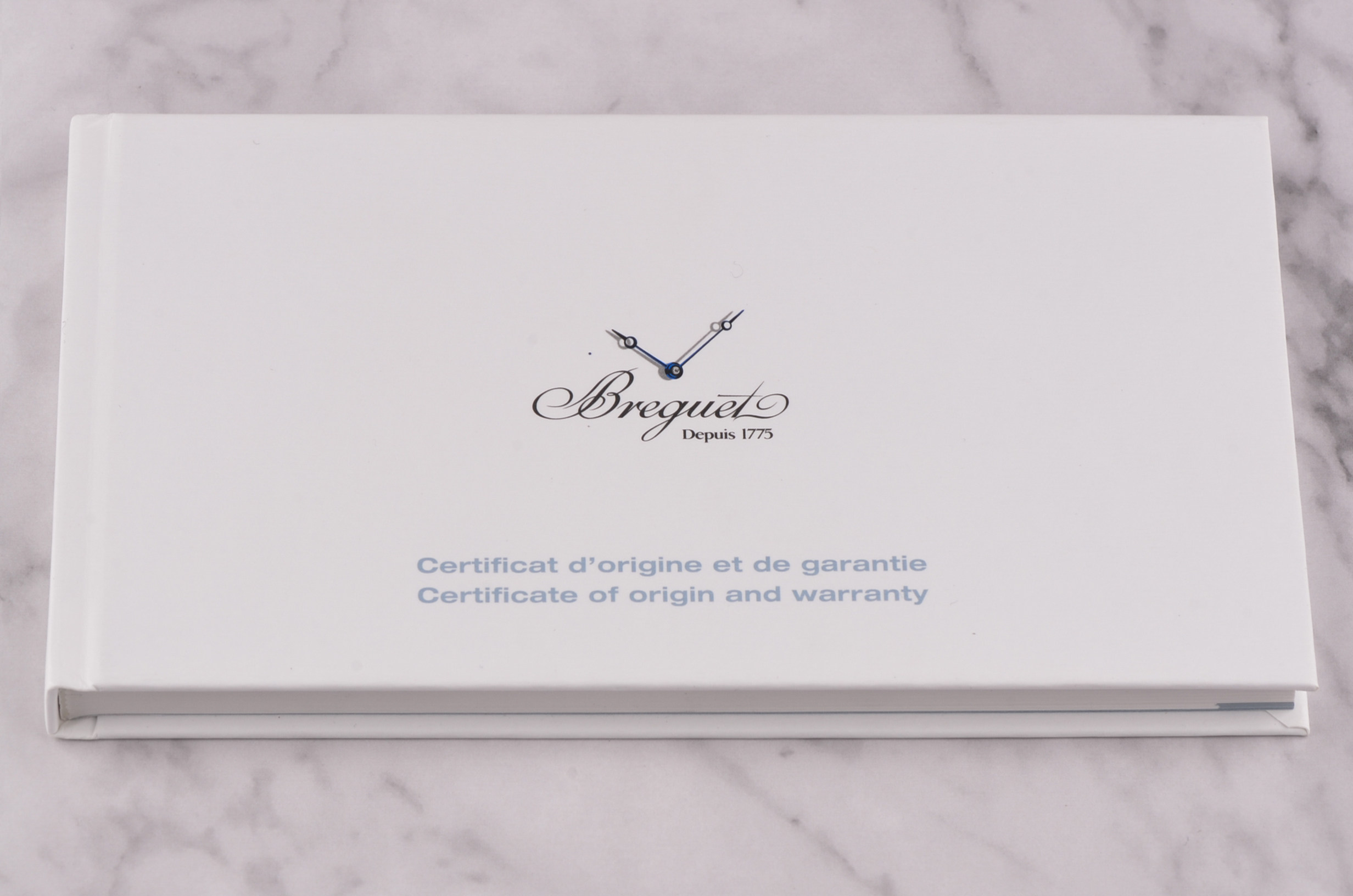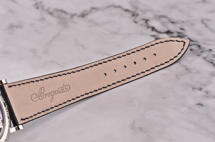 宝玑自产CAL.558SQ2型机芯,手上链,极其精致人手条纹打磨,倒角抛光。陀飞轮功能,25钻,摆频18000,机芯独立签署,动力储存约50小时,走时状态极嘉。