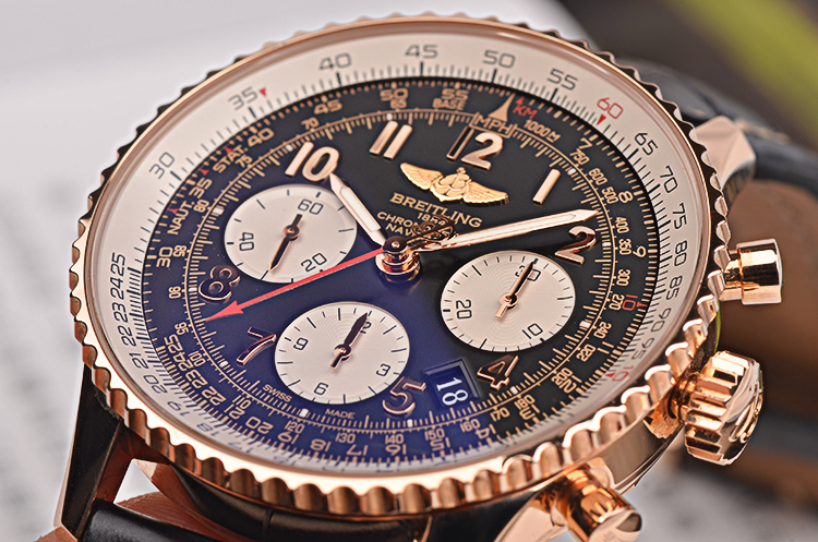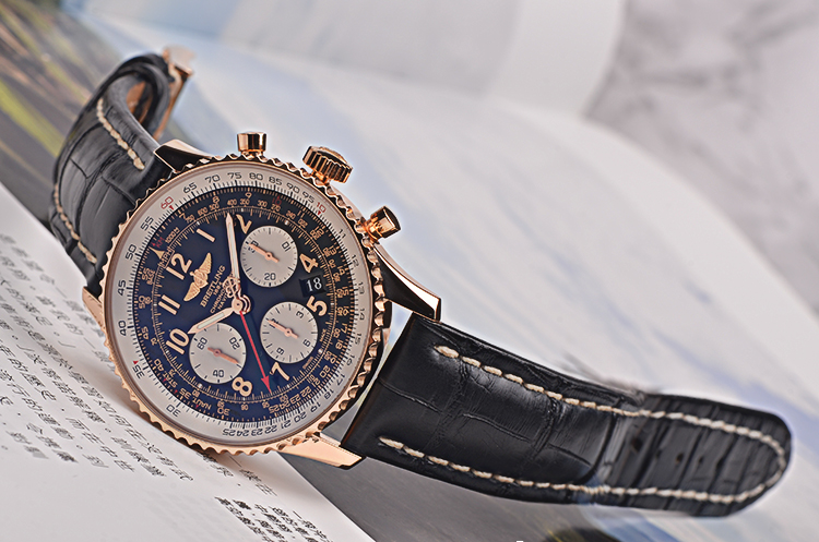 航空计时1系列43MM玫瑰金计时日历自动机械皮带男表