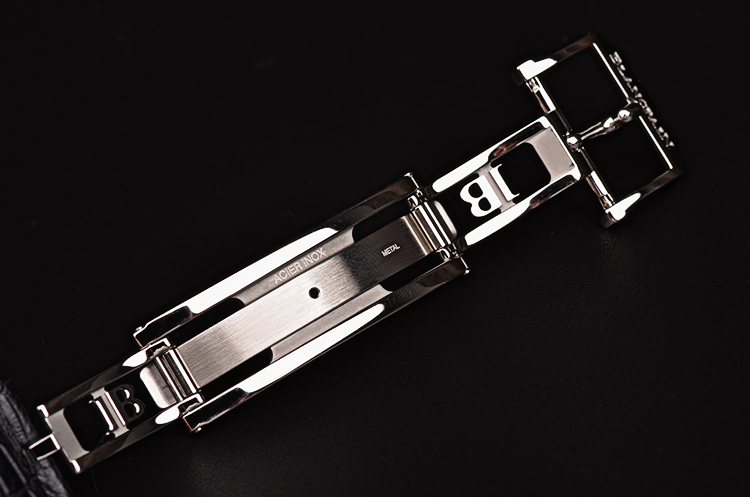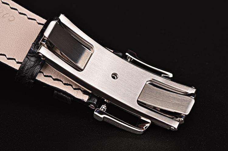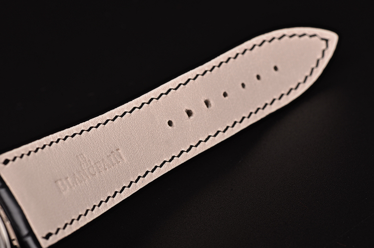 精钢表壳及双向折叠式弹簧表扣,后配全新黑色鳄鱼皮表带。蓝宝石水晶镜面及底盖,立体白色表盘,小三针设计。宝珀经典的柳叶形时分针,罗马字刻度。3点位日历窗口,6点位独立小秒针,9点位动力储备显示。口径40MM*8.5MM,防水30M。